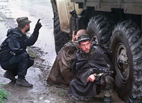 Раз в месяц майор оккупационный русской армии и Чечне Борис Прошкин загружает в микроавтобус прибывшую в Чечню группу иностранных журналистов и показывает им "обстановку". "Швейцарец тут?", кричит майор, по советской привычке называя всех по национальности, а не по именам". "Так точно!", перекрикивает шум мотора корреспондент.