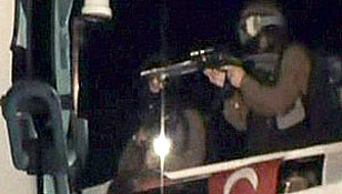Оказывается, солдаты вовсе не нападали на корабль. Вооруженный до зубов «морской спецназ» мирно десантировался и взял на абордаж турецкий паром, постреливая для острастки. Однако, несмотря на явное демонстрацию миролюбия евреев, террористы, затаившиеся на корабле под маской правозащитников, напали на солдат, которые вынуждены были защищаться.