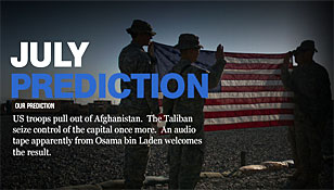 Издание прогнозирует, что в июле 2011 года американские войска покинут Афганистан и сразу вслед за этим власть в столице захватит "Талибан". Все эти события венчает аудиозапись от Усамы бен Ладена, предполагает портал.