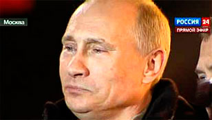 "Путин приехал в свой избирательный штаб глубоко за полночь. Аплодисменты, хлопки пробок от шампанского не смолкали, пока он переходил из зала в зал, где собрались его сторонники.