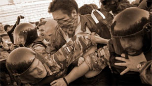 Одновременно с этим корреспонденты небольшого независимого телеканала "Дождь" передавали в прямом эфире сообщения с Садового Кольца, где было видно, как ОМОН задерживает людей, а комментаторы в эфире "Дождя" говорили о городе "под оккупацией".