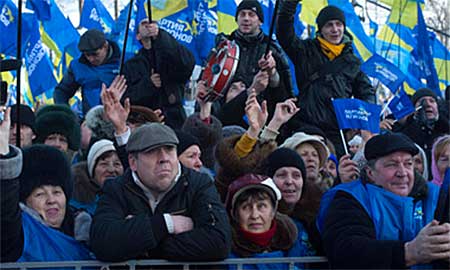 Между тем в "народном вече" на Майдане Незалежности в центре Киева в воскресенье, приняли участие около 100 тысяч человек. Оппозиция решила продолжить акции протеста и создало объединение "Майдан". Оно потребовало разработки новой Конституции Украины и обещает готовить "проект развития страны".