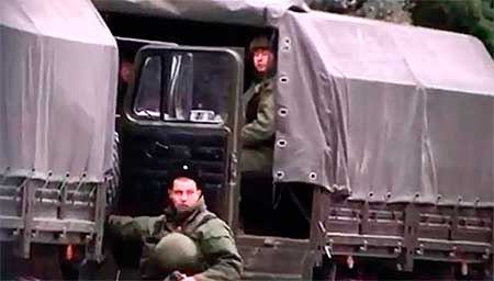 С прибытием указанных транспортных средств со стороны Украины в пункт пропуска ворвались 10 вооруженных автоматами и пулеметами солдат из русской банды ЧФ РФ, которые оттеснили пограничный наряд и заняли огневые позиции по периметру.