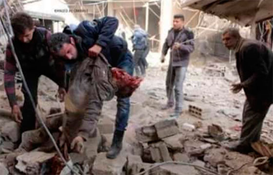 В феврале Хьюман Райтс Вотч сообщили, что российские войска использовали кассетные боеприпасы 14 раз за 2 недели. За время войны в Сирии по официальным данным убиты 250 тысяч мирных жителей. Однако мониторинговые группы указывают, что число убитых в 2 раза больше и достигает 500 тысяч.
